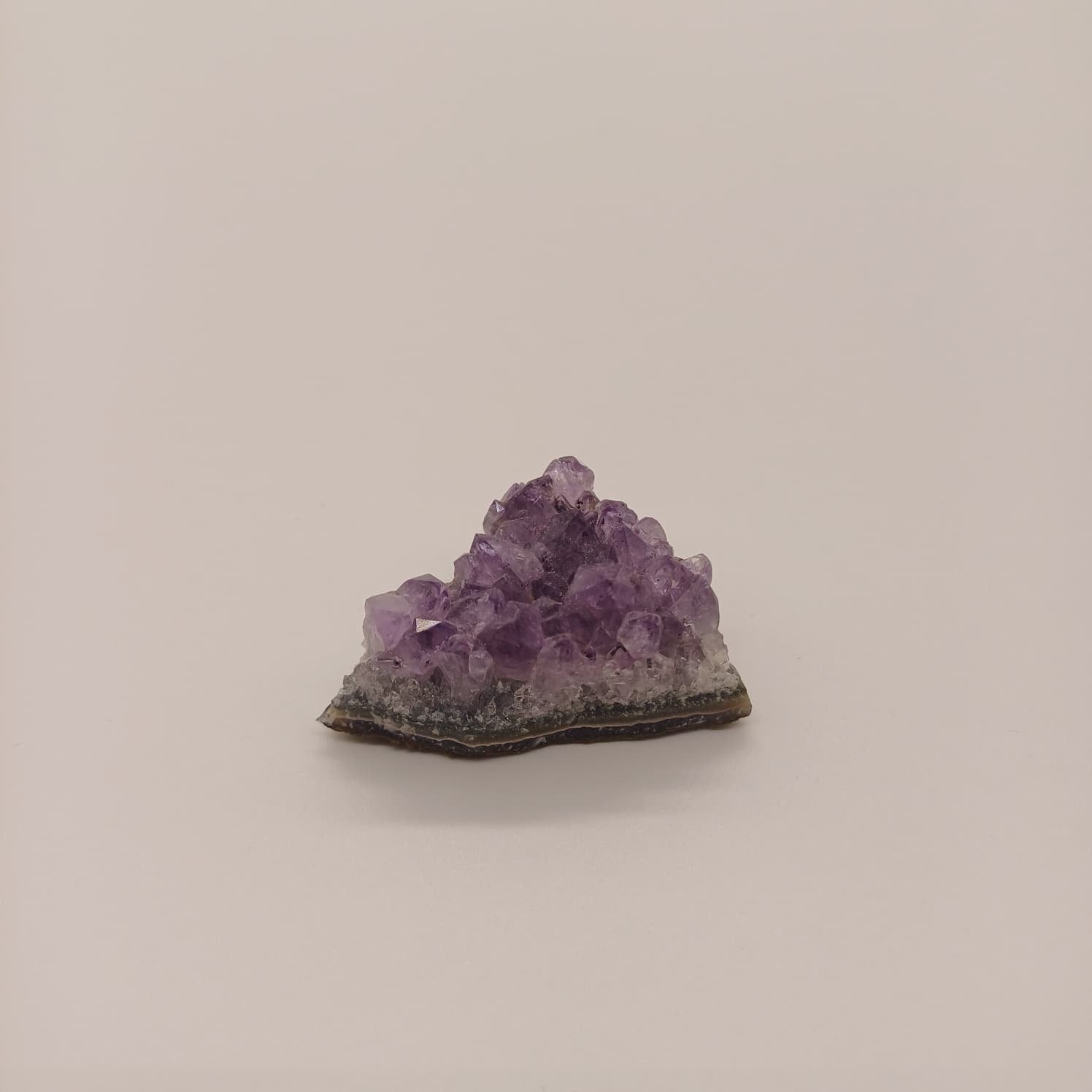 Ametist, SiO₂ (Silisyum Dioksit) yapısına sahip bir kuvars kristalidir . Mor renkleri, demir mineralleri ve doğal radyasyonun birleşimiyle kazanır. Mohs çıktı skalasında 7 değerindedir; bu da onu uzun ömürlü, sağlam ve enerjisel olarak dayanıklı muhafaza eder.
